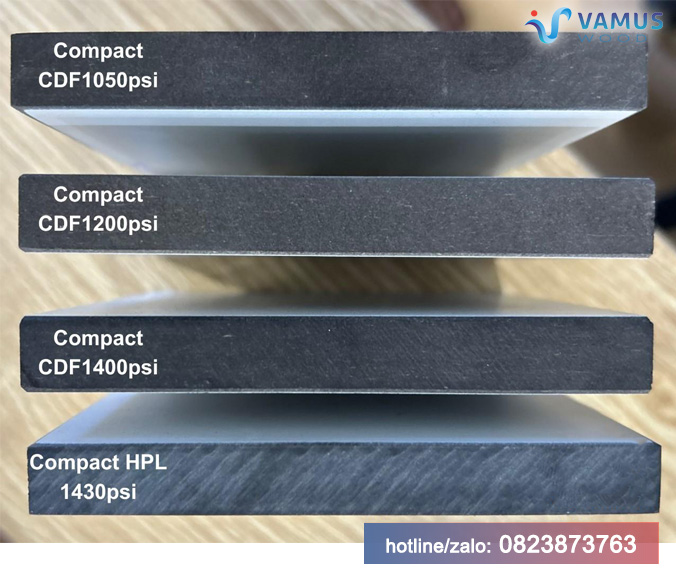 Độ dày tấm Compact CDF: 12mm và 18mm; (Độ dày được sử dụng phổ biến là 12mm)
